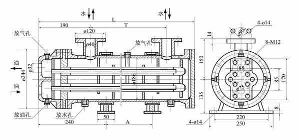 2LQG2W型(固定管板式)冷却器外形图及尺寸